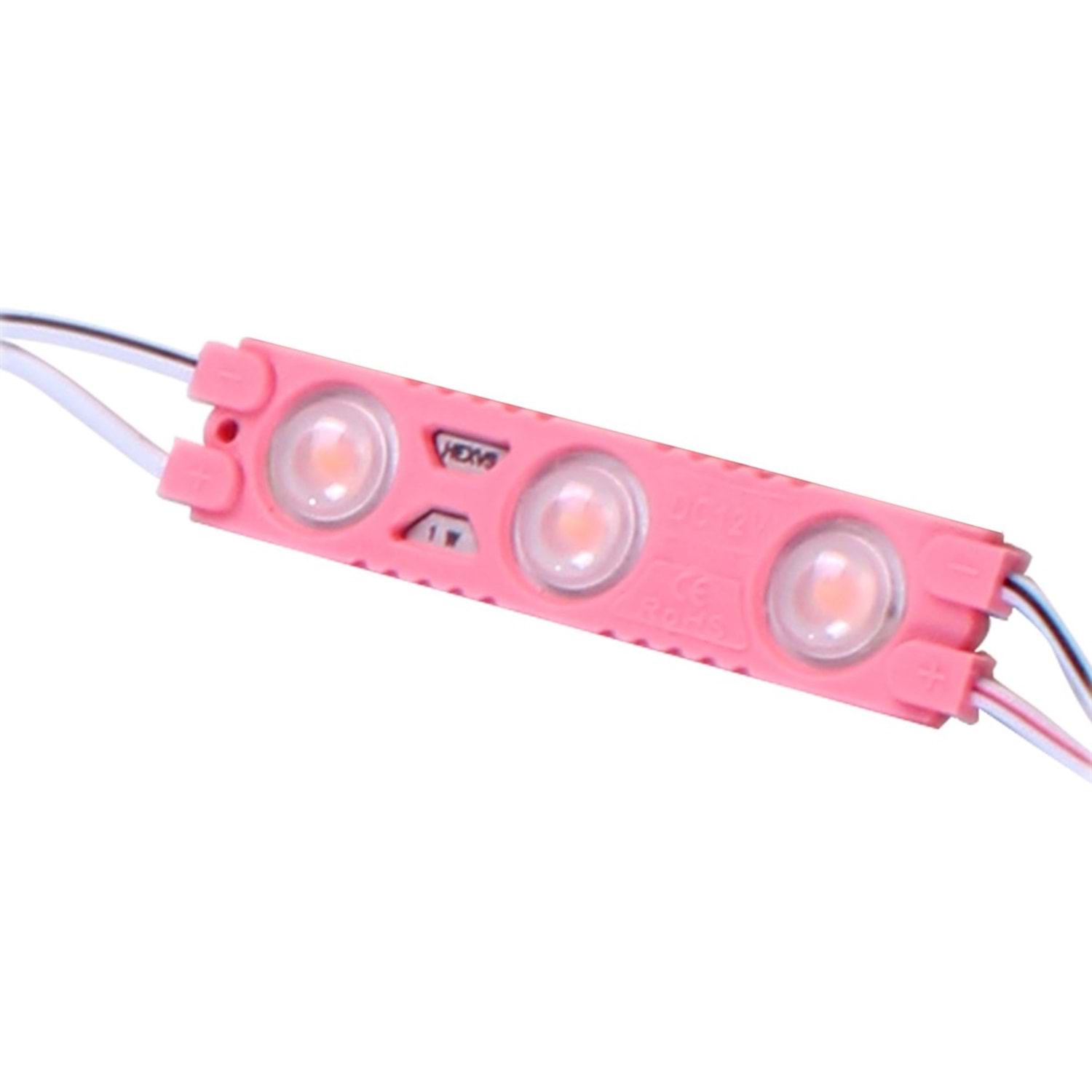 3 Çip 12 Volt Pembe Parmak Led