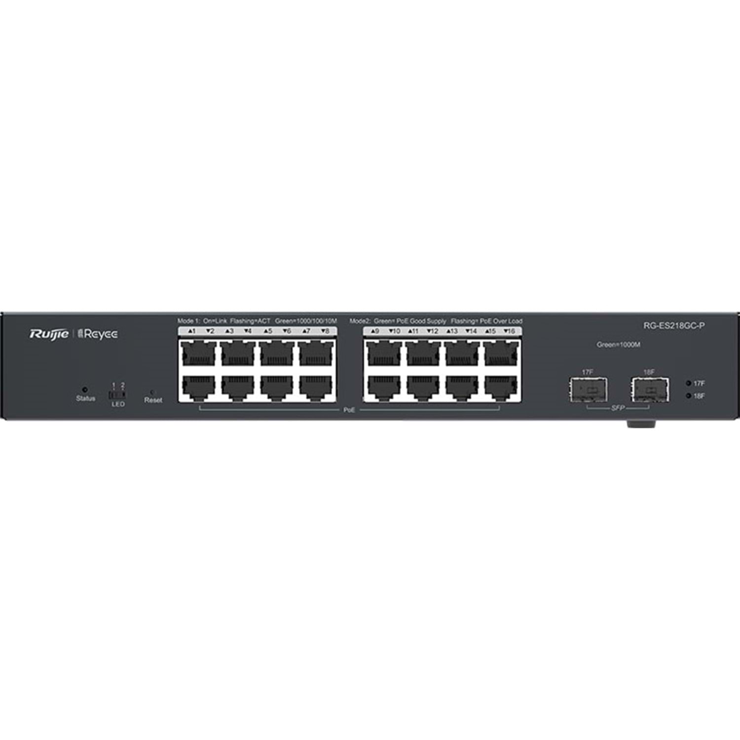 RG-ES218GC-P 18-Port Gigabit Smart POE Switch, 16 Gigabit RJ45 16 POE/POE+ Ports, 2SFP, 240W